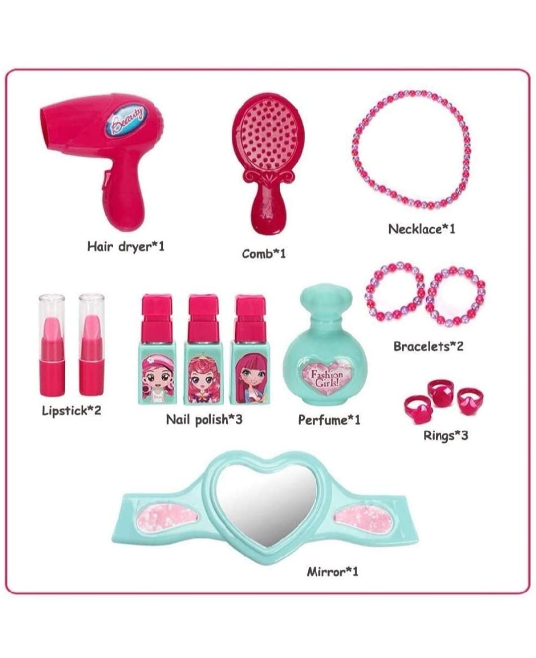 - EDUCATIONAL & FUN – Pretend beauty set play is an educational and enjoyable activity for children. It allows them to unleash their imagination, foster creativity, and cultivate empathy and social skills. Moreover, kids can explore a variety of beauty accessories and become familiar with various grooming tasks. Engaging in this imaginative play can also assist in reducing children’s anxiety and increasing their comfort with beauty routines.