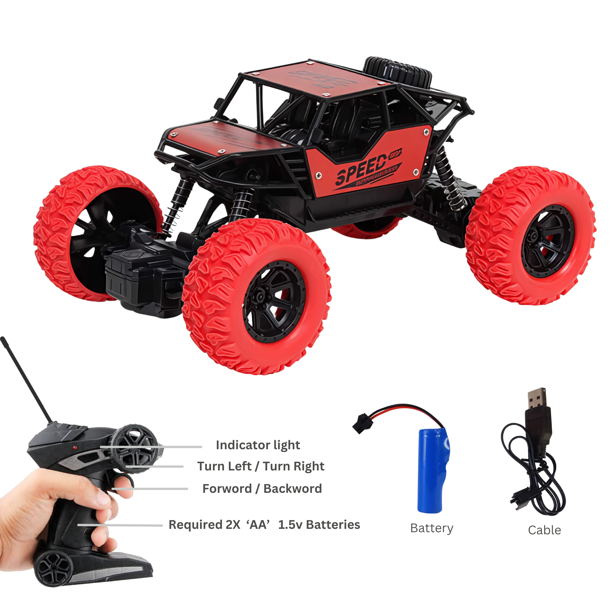 Rock Crawler Rc Monster Truck Remote Control Car for Kids Rock Crawler 5 Function 1:18 Rc Car Toys for Boys 2Wd Offroad High Speed Remote Car Toys for Kids 4 Years 10 Year – (Red)