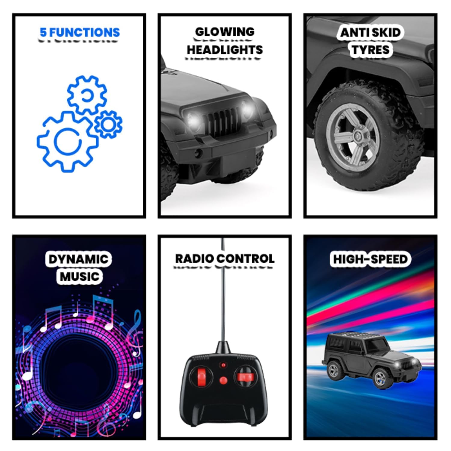 Gooyo Thar Rechargeable Remote Control Car withHindi Song | User-Friendly RC Toy for Kids |Assorted| Power Source: Lithium Battery in Car (Included) | Best Gift for Kids | Musical Car Toy (Black)