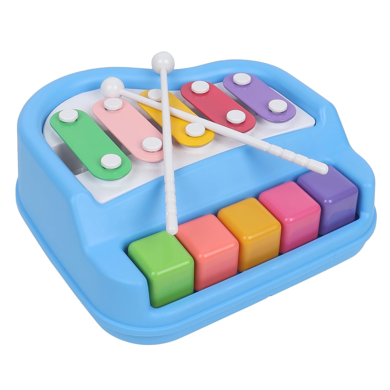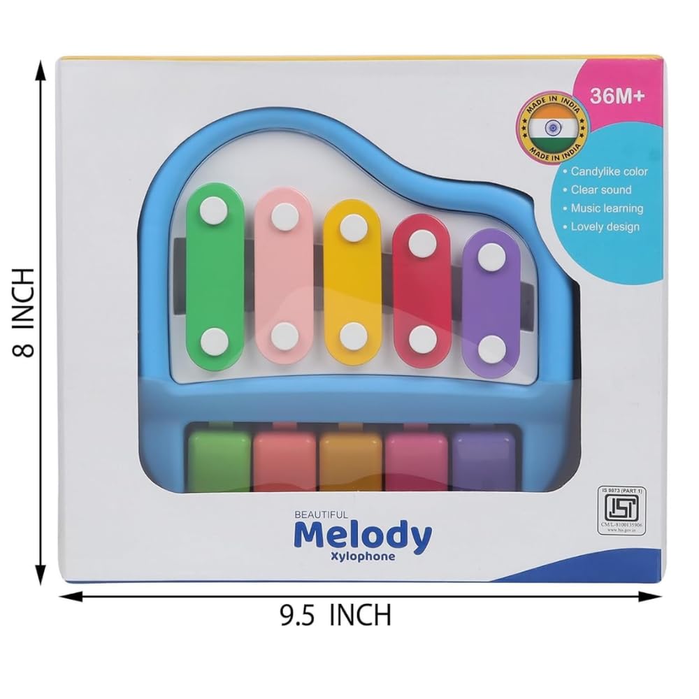 2 in 1 Piano Xylophone Premium Non Toxic, Non-Battery, 5 Key Scale Musical Instrument for Kids, Toddlers (Multicolor)